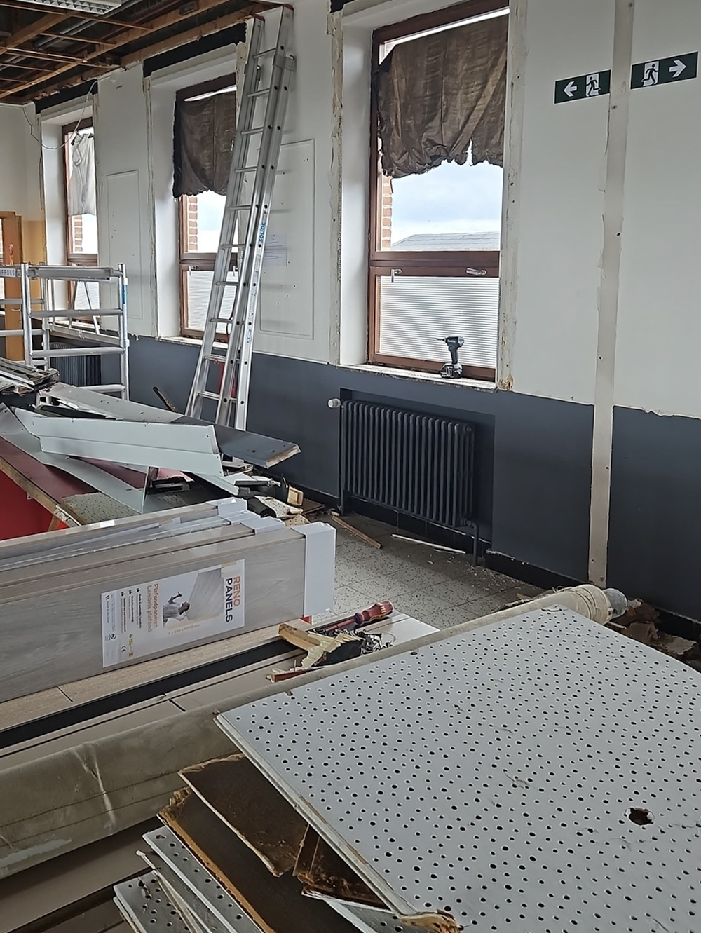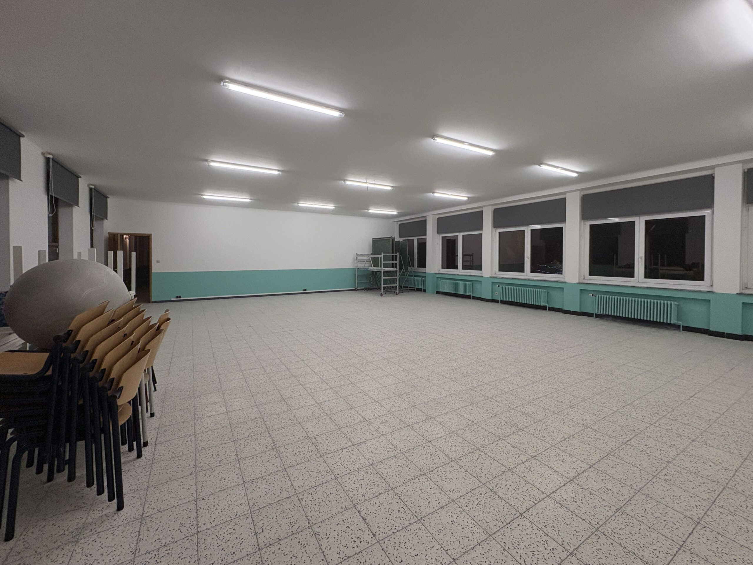 Encore une école qui relève un véritable défi ! Une salle polyvalente, entièrement rénovée, a été transformée en un espace moderne, lumineux et accueillant, dont toute l’école pourra profiter avec plaisir. Bravo les bricoleurs !